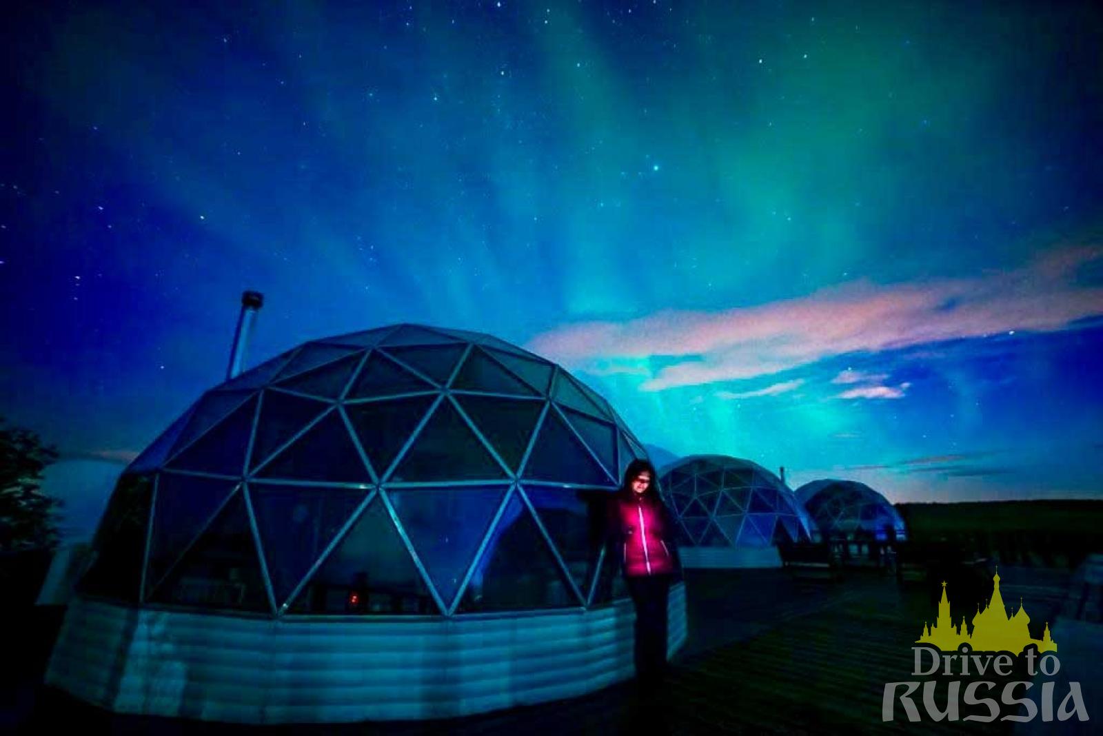 We’ll be spending the night at a cozy hotel located outside of Murmansk. Situated very conveniently close to a large lake, Lapland Village offers a number of comfortable cottages that allow you to see the birth of the Northern Lights outside the city lights and enjoy the magnificent dancing colors in a fluffy bed (or on the deck outside).