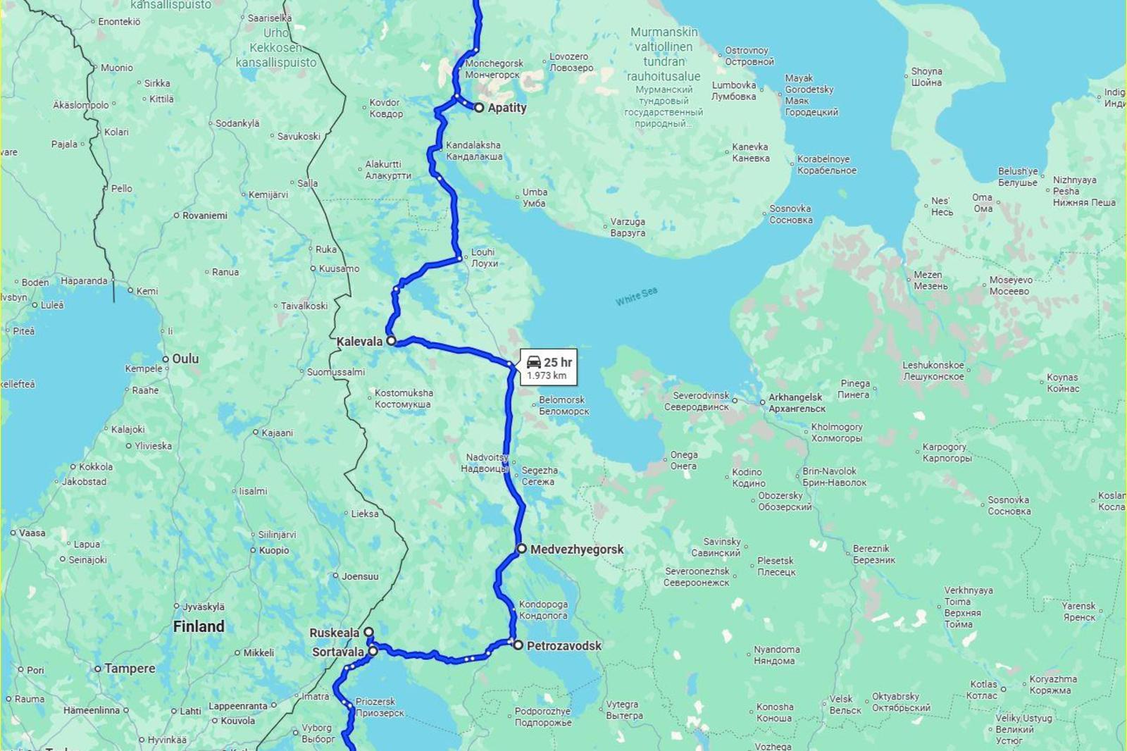 Route: St. Petersburg – Murmansk, 2300km